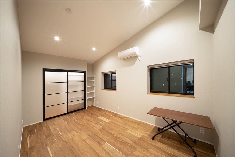 SE構法の強みを生かして、耐震性の高さと自由な空間を両立した設計です。特に3階の親世帯のリビングは勾配天井の開放的な気持ち良さです。