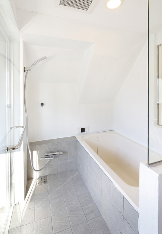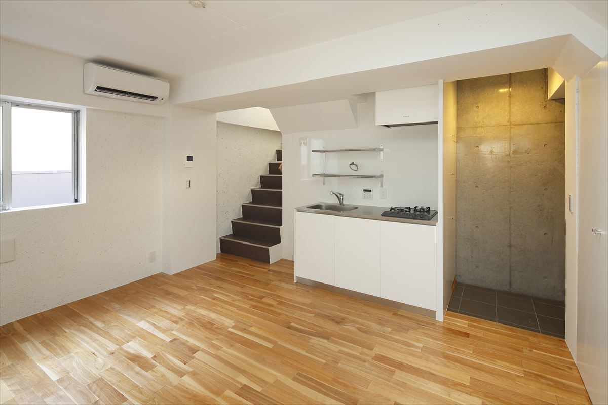地下と1Fがテナント店舗、2、3Fは賃貸住居という、事業用として計画した建物です。敷地は65㎡という狭小地ですが、斜線制限や避難経路など法的制限をうまく生かして設計しました。特に、地下店舗は道路からも入店しやすいようにとドライエリアのような配置をしたり、2,3Fはクロスメゾネットにして、どちらの部屋も光と空間を確保しました。