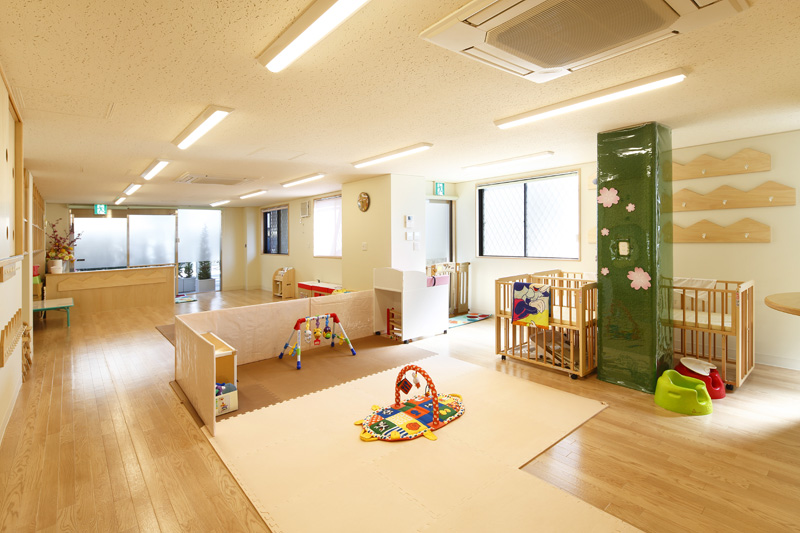 目黒区碑文谷にある保育園です。スケルトン状態から内装のデザインと施工、看板のデザインまでオーワークスでやらせていただきました。
