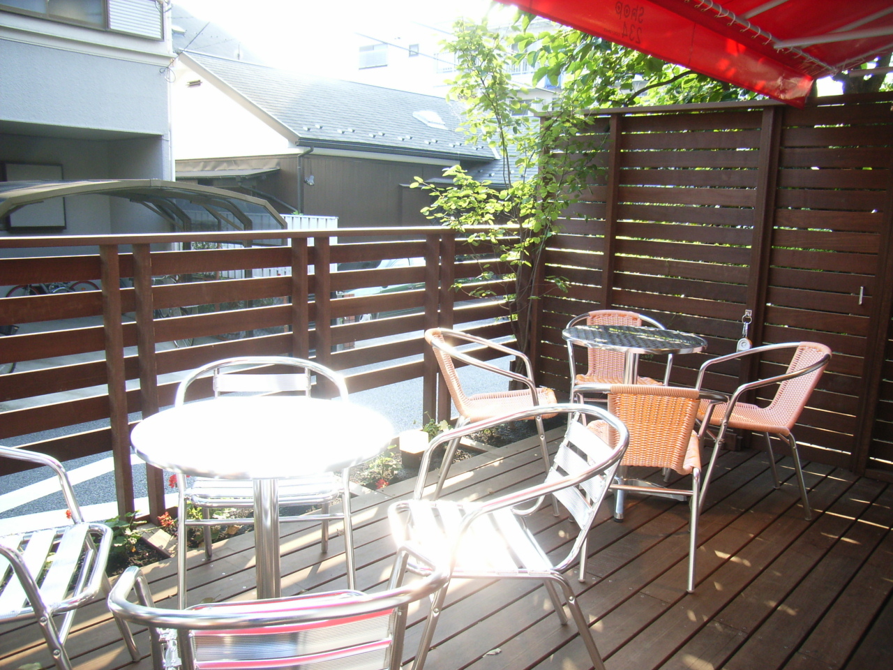 アプローチを庭から入るように計画をすることで、アパートの一室には見えない、まるでオープンカフェのようなおしゃれなお店に大変身しました。
