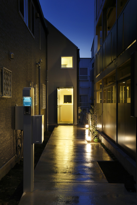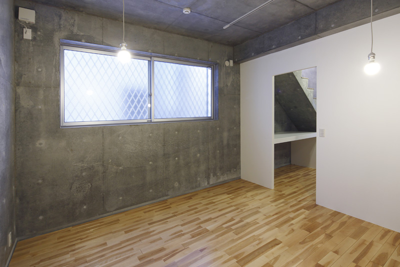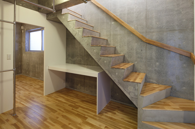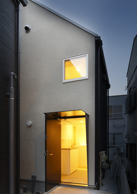 品川区五反田の旗竿状の狭小地で、周りを建物に囲まれた難しい敷地条件でしたが、光や風をうまく取り入れる快適な暮らしをコンセプトに設計しました。特に2Fの壁の上部には大きめの窓を配置することで、リビングに隣の建物に邪魔されずにいつでも光が入ってくる空間を実現しています。地下室にも小さな吹き抜けを設けて、空気がこもらずに風が家全体に抜けていくような提案も。また、ご主人が帰宅するときに、玄関の上の小さめの窓からキッチンにいる奥様がお迎えできるような演出もしてみました。