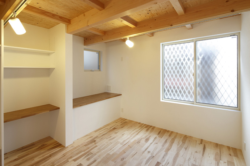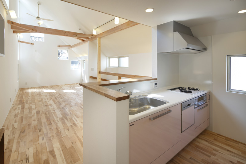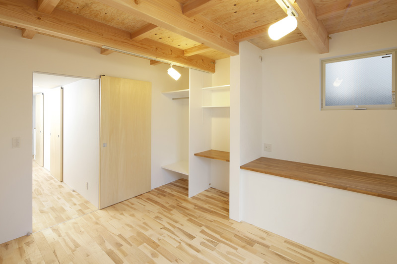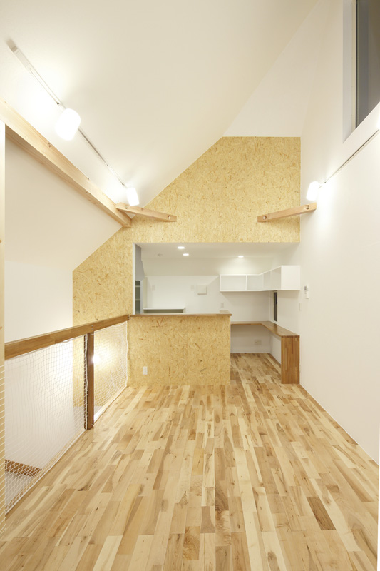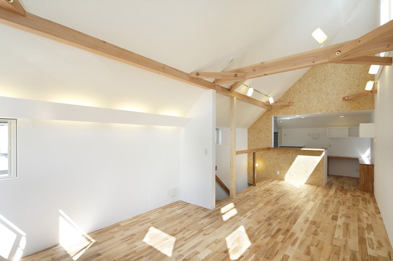 主な仕上げ | 外壁:スタッコ吹き放し、床材:バーチ&メイプル無垢材、内壁:OSBに塗装仕上げ |