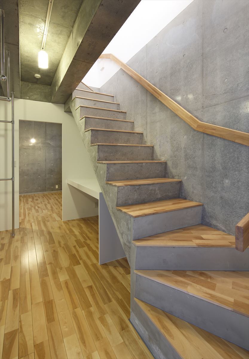 品川区五反田の旗竿状の狭小地で、周りを建物に囲まれた難しい敷地条件でしたが、光や風をうまく取り入れる快適な暮らしをコンセプトに設計しました。特に2Fの壁の上部には大きめの窓を配置することで、リビングに隣の建物に邪魔されずにいつでも光が入ってくる空間を実現しています。地下室にも小さな吹き抜けを設けて、空気がこもらずに風が家全体に抜けていくような提案も。また、ご主人が帰宅するときに、玄関の上の小さめの窓からキッチンにいる奥様がお迎えできるような演出もしてみました。