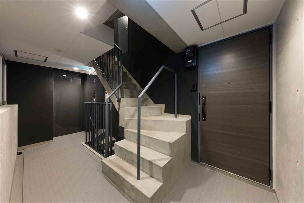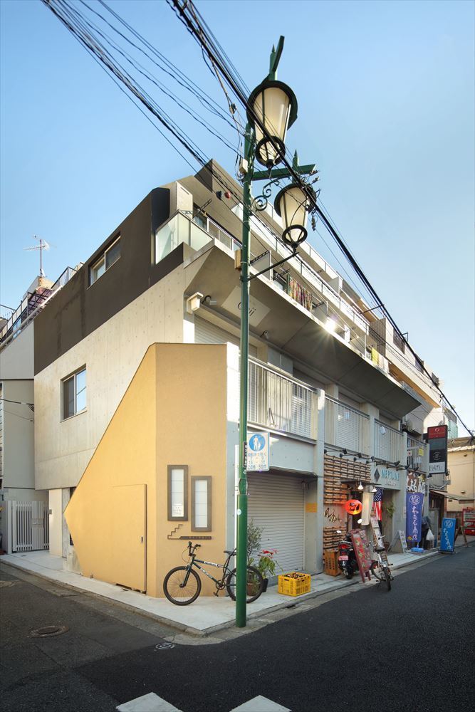 3~5Fは賃貸住宅。住宅側アプローチとテナントは完全分離。