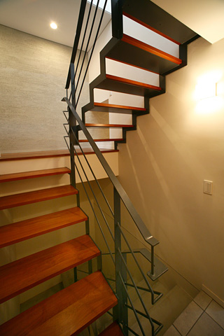 スキップフロアを採用することにより地下事務所の打合せスペースは天井を高く自然採光を可能にし、上階の居住スペースは各室の空間が繋がるようにプラン。目線で横長に連続するダイナミックな窓が部屋と空を近づける。環境に優しい家庭用燃料電池エネファームを設置。