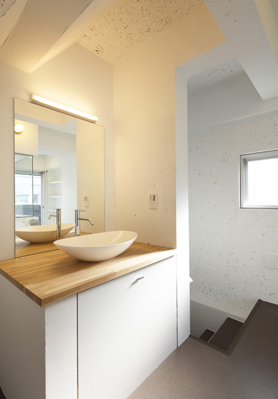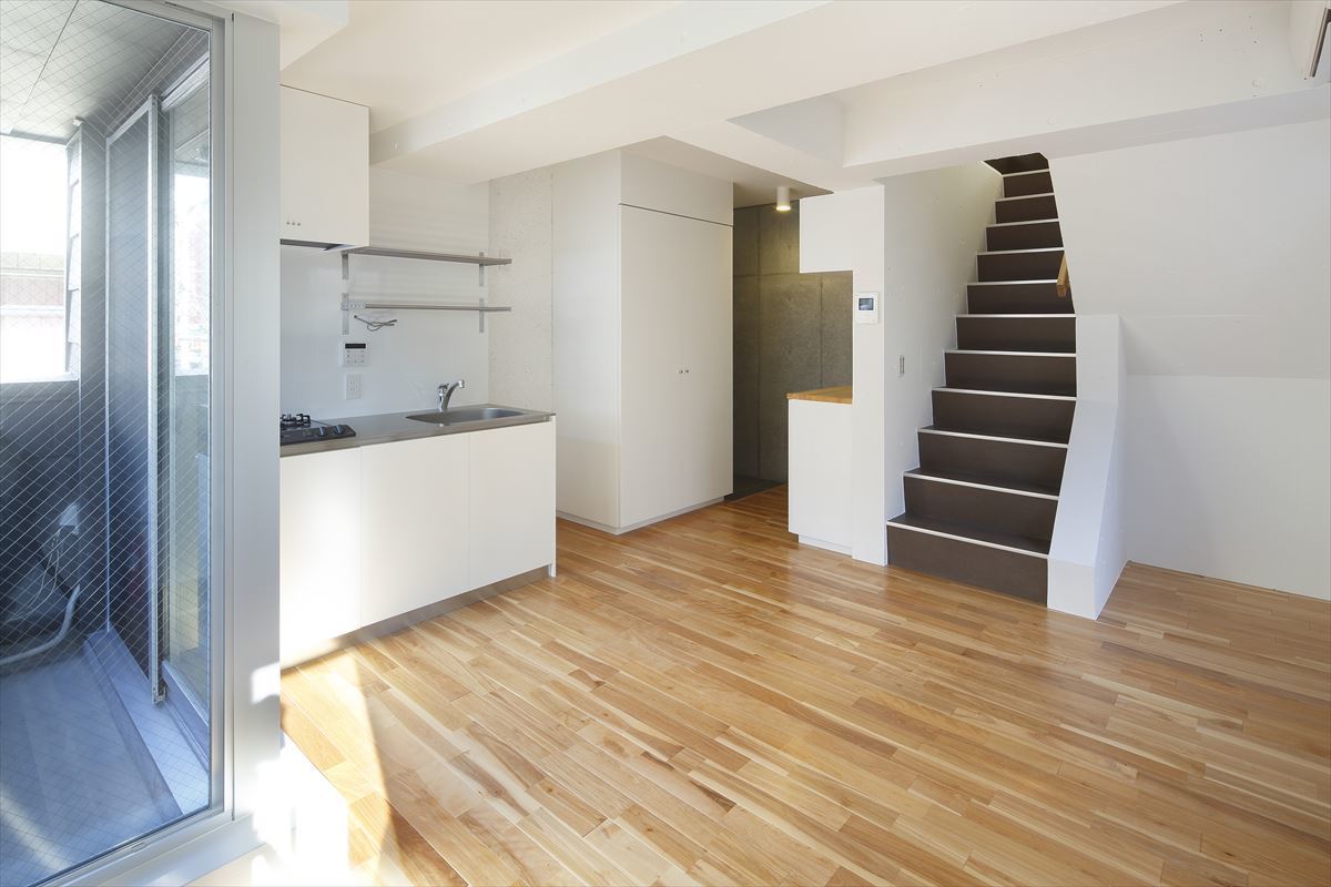 地下と1Fがテナント店舗、2、3Fは賃貸住居という、事業用として計画した建物です。敷地は65㎡という狭小地ですが、斜線制限や避難経路など法的制限をうまく生かして設計しました。特に、地下店舗は道路からも入店しやすいようにとドライエリアのような配置をしたり、2,3Fはクロスメゾネットにして、どちらの部屋も光と空間を確保しました。