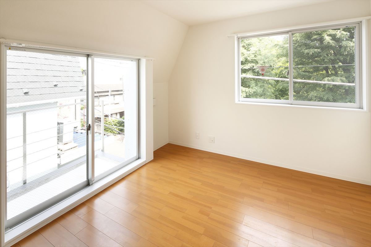 ルーフバルコニーからは、道路を隔てた先にある公園を見晴らせる眺望がとても気持ち良いです。