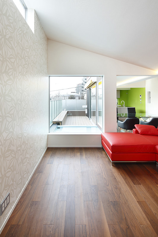 坂、高台をいかし隣地の屋根越しの眺望を得るように設計されています。