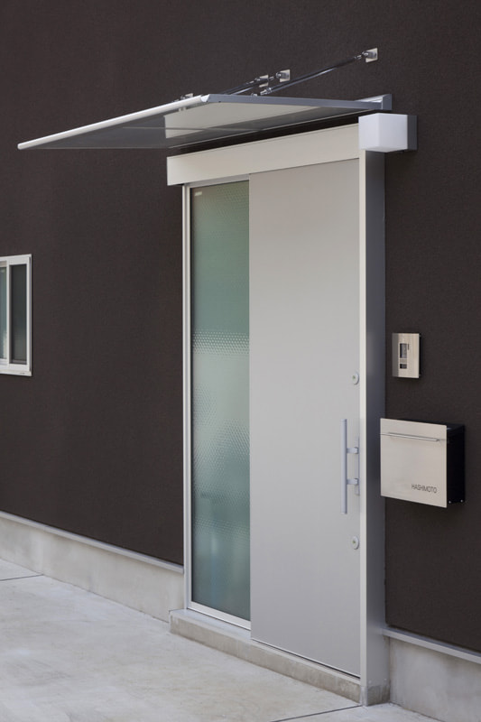この作品は、庭や駐車場との関連性をより有効にするために、あえて建物を敷地に対して約30度振って配置したことが大きな特徴である。