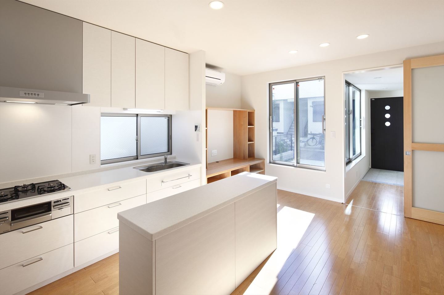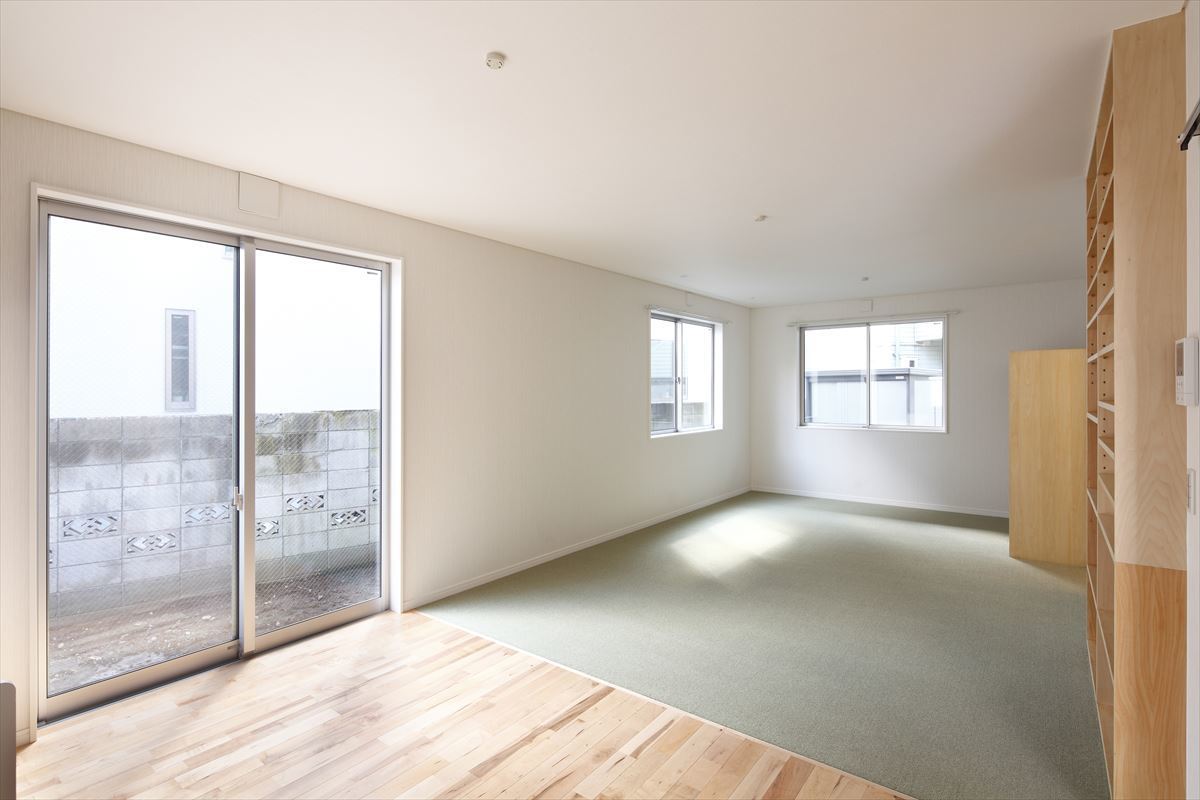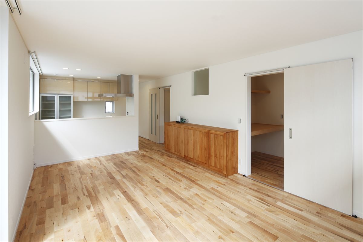 | 主な仕上げ | 外壁 スタッコ吹付 内部 無垢フローリング(バーチ)、 対面キッチン、オリジナル家具 |