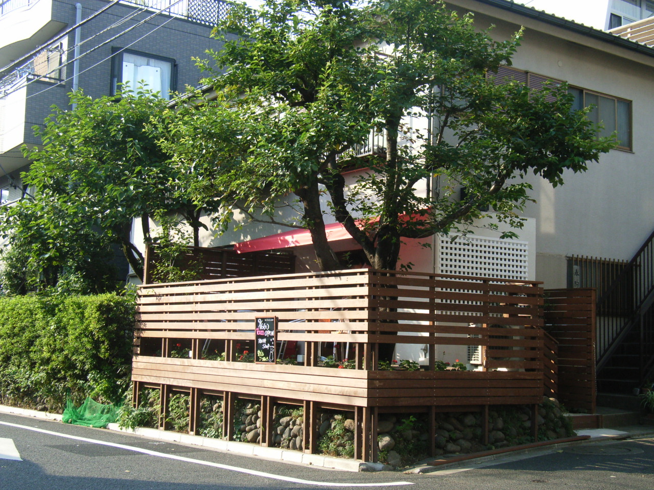 アプローチを庭から入るように計画をすることで、アパートの一室には見えない、まるでオープンカフェのようなおしゃれなお店に大変身しました。