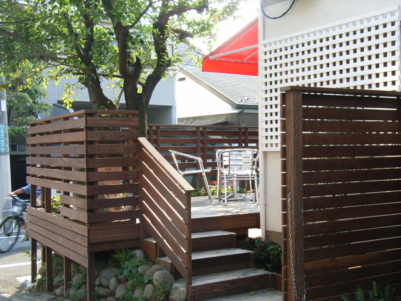 ウッドデッキにしたそのお庭は、外からの視線を遮るように木製の塀をデザインしてあります。