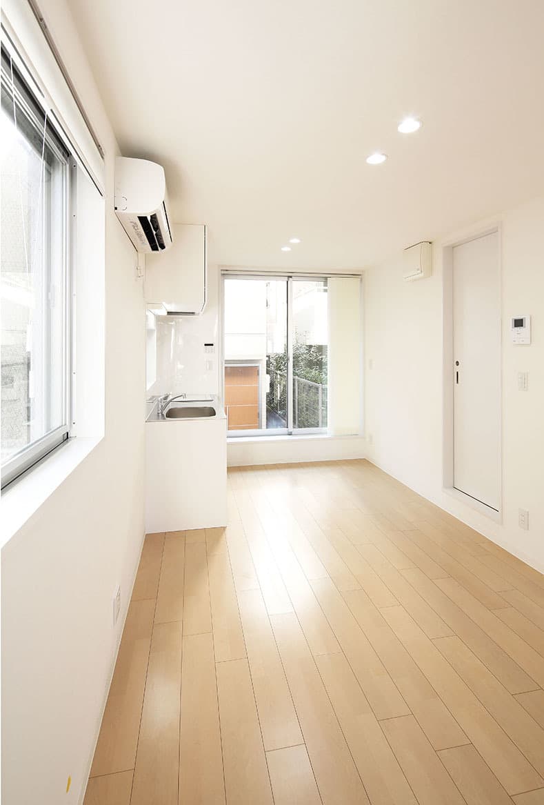 各フロアにワンルーム1戸ずつの共同住宅です。各部屋の面積は